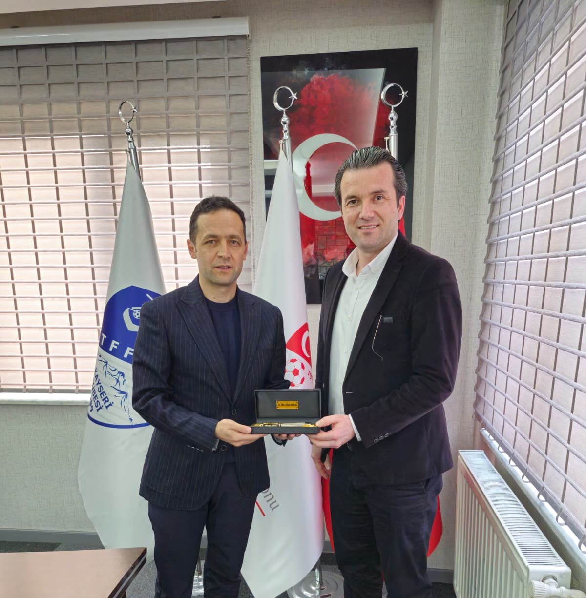 Derneğimizin yeni yönetim kuruluna hayırlı olsun ziyaretinde bulunan Türkiye Futbol Saha Komiserleri Derneği Kayseri Şubesi Başkanı Safa Menderes Civek ve beraberindeki heyete nazik ziyaretleri ve iyi dilekleri için teşekkür ederiz.